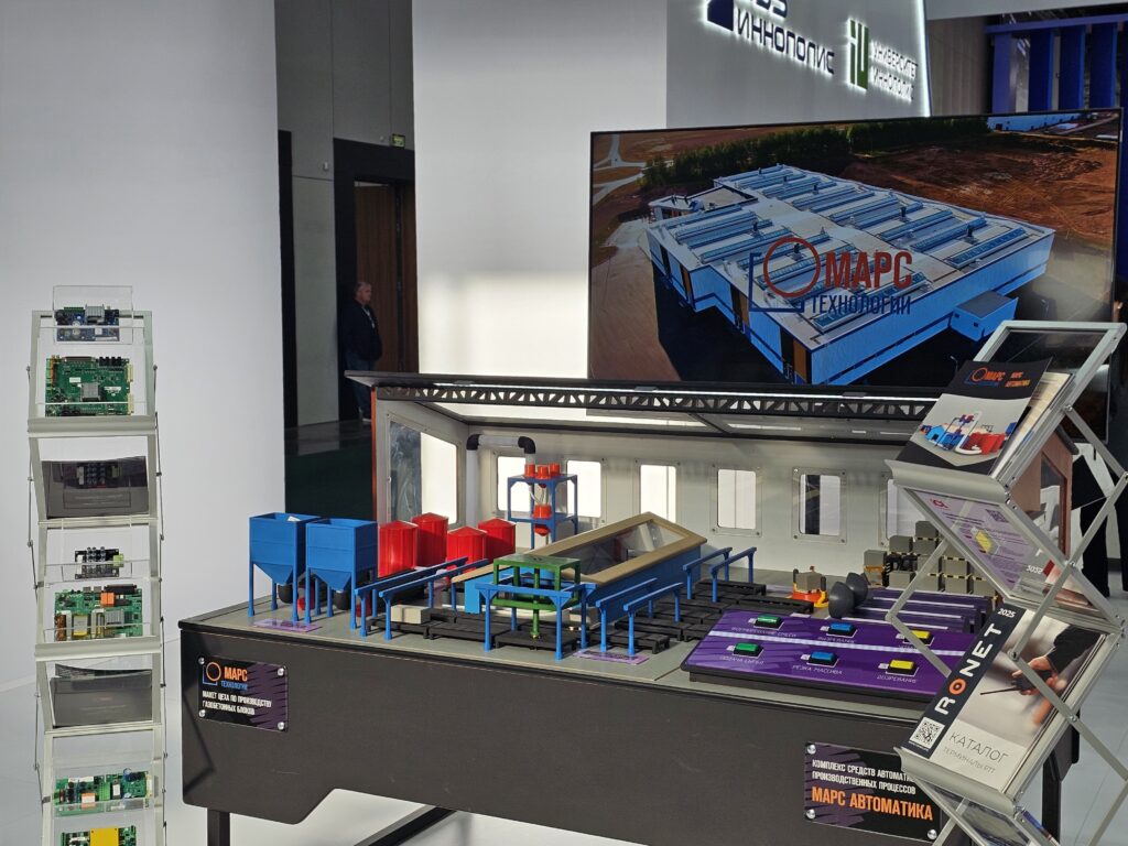 - Комплекс «МАРС-АВТОМАТИКА» — развитие и расширение функционала комплексов «МАРС-АРСЕНАЛ» и «МАРС-МОНИТОРИНГ», внедряемых в РФ и за рубежом с 2014 года. На стенде он был представлен в виде автоматизированного макета завода по производству газобетонных блоков, наглядно демонстрирующего интеграцию систем управления, контроля технологических параметров и автоматической реакции на события в реальном времени. Решение вызвало наибольший интерес у посетителей: представители нефтегазовой отрасли, энергетики и производители стройматериалов активно интересовались возможностями комплекса как инструмента импортозамещения в области промышленной автоматизации. Особое внимание было уделено группе контроллеров различного назначения, обеспечивающих гибкость и масштабируемость решения под задачи предприятий любого профиля.