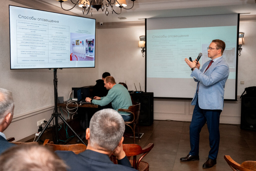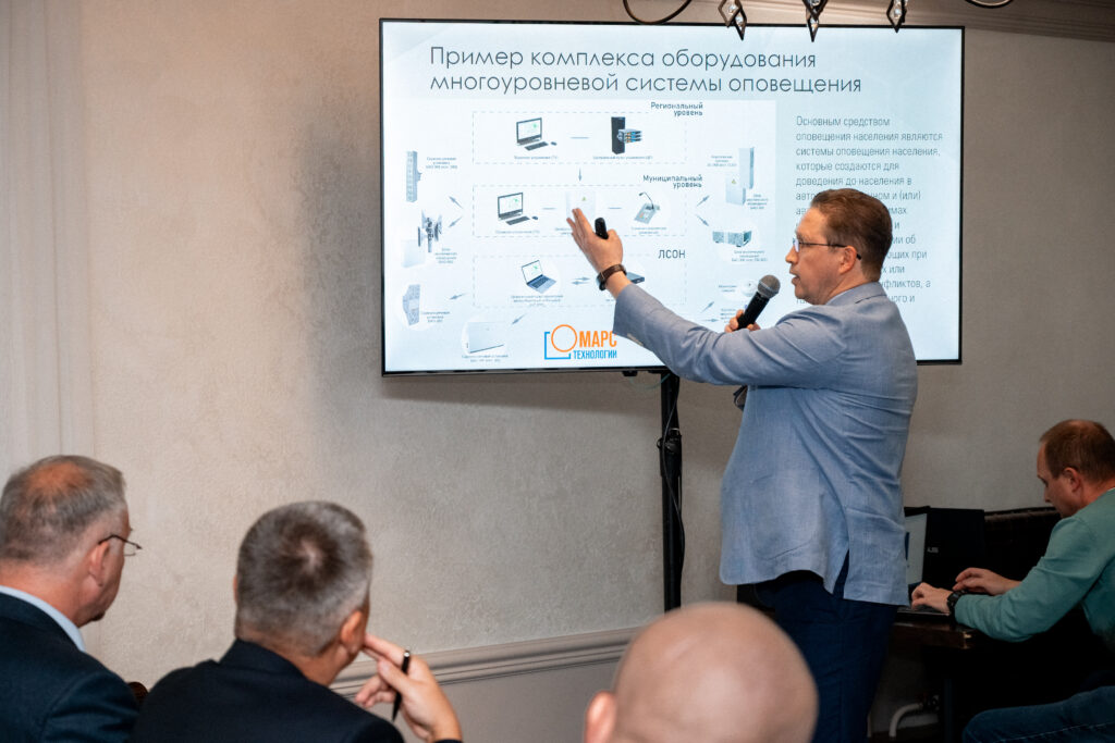 Генеральный директор ООО «Марс Технологии» Алексей Петрович Кожемяко выступил с докладом о современных программно-аппаратных решениях для обеспечения оповещения и информирования населения. В своем выступлении он подробно описал принципы построения комплексных систем, которые обеспечивают надежное оповещение в любых условиях — от городских территорий до промышленных объектов с повышенной опасностью. Компания представила системы оповещения МАРС-АРСЕНАЛ, включая региональные, муниципальные и локальные системы, соответствующие требованиям МЧС России, а также системы мониторинга МАРС:МОНИТОРИНГ для контроля опасных объектов и природных угроз. Особое внимание привлекли примеры интеграции систем мониторинга с системами оповещения, где данные с датчиков уровня воды и лесопожарного мониторинга автоматически запускают оповещение населения, минимизируя время реакции и повышая безопасность.